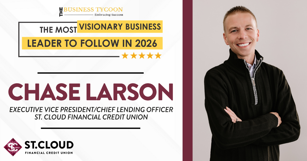 St. Cloud Financial Credit Union is proud to announce that Executive Vice President and Chief Lending Officer Chase Larson has been recognized by The Business Tycoon as the Most Visionary Business Leader to Follow in 2026.