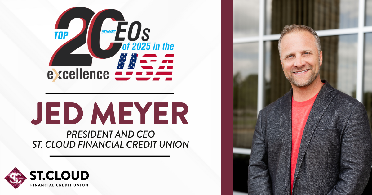 St. Cloud Financial Credit Union is proud to announce that President and CEO Jed Meyer has been named one of the top 20 dynamic CEOs in the USA in 2025 by The Excellence Review.